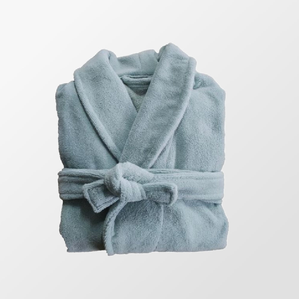 Een opvallend detail is de extra zachte en dikke kraag, ontworpen om je nek warm te houden, vooral wanneer je net uit bad stapt en nog wat vocht op je huid of in je haar hebt. Zodra je de badjas omslaat, voel je meteen het omhullende comfort, alsof je in een warme cocon kruipt.