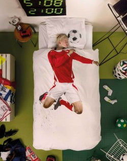 Dit DEKBEDOVERTREK SOCCER CHAMP RED van Snurk is perfect voor alle voetbalfans die van rood houden. Het is gemaakt van heerlijk zacht katoen en heeft een levensechte print van een voetballer op het veld. Met dit dekbedovertrek geef je jouw slaapkamer een sportieve en stoere uitstraling. Droom weg over het behalen van je eigen doelen terwijl je slaapt onder dit prachtige dekbedovertrek. Laat je inspireren door de passie en toewijding van de voetballer op dit dekbedovertrek en ga voor de overwinning, zowel op het veld als daarbuiten!