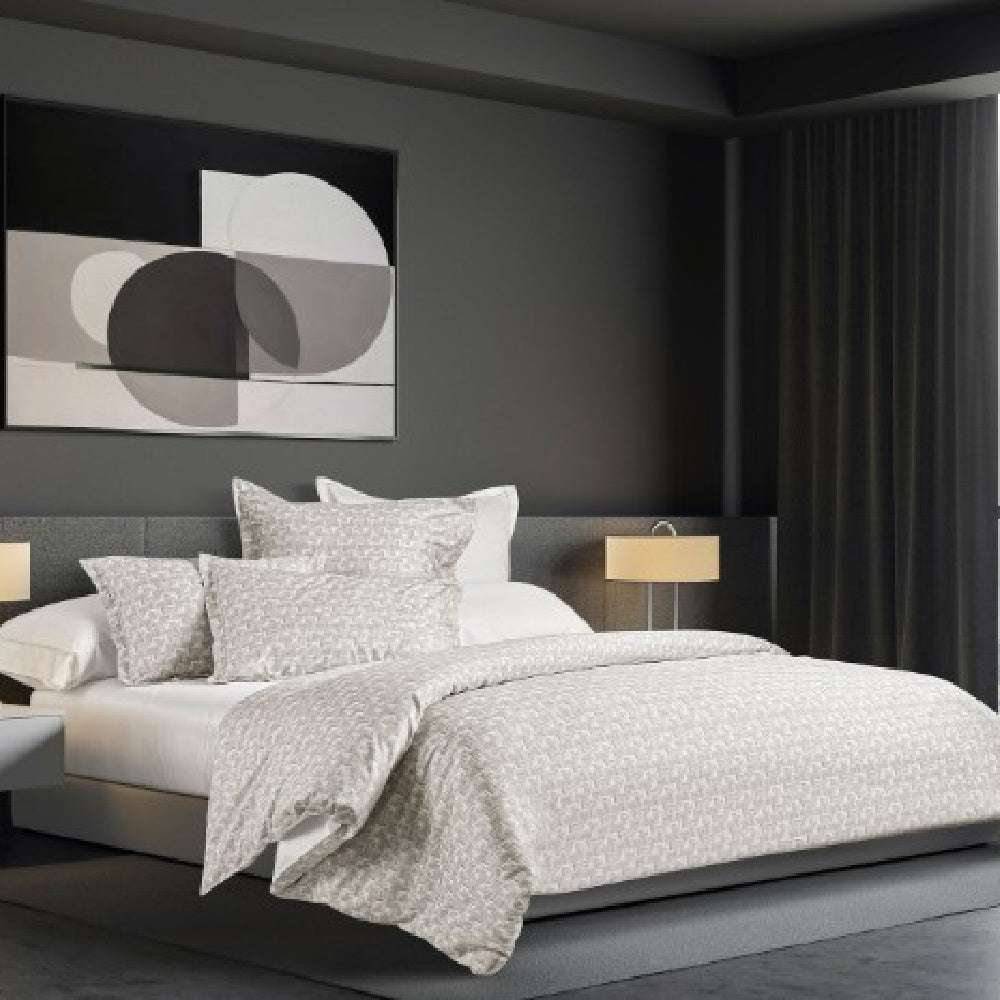 Het DEKBEDOVERTREK INTRIGO PEARL van Signoria is modern en rustig tegelijk. Het dessin bestaat uit speels met elkaar verweven vormen, alsof ze met een zachte hand zijn geschilderd. De fijne penseelstreken geven het ontwerp een verfijnd en bijna artistiek karakter, zonder dat het druk wordt. Juist die eenvoud maakt het dekbedovertrek zo sterk: het past moeiteloos in een modern interieur en brengt een rustige, stijlvolle sfeer in de slaapkamer.