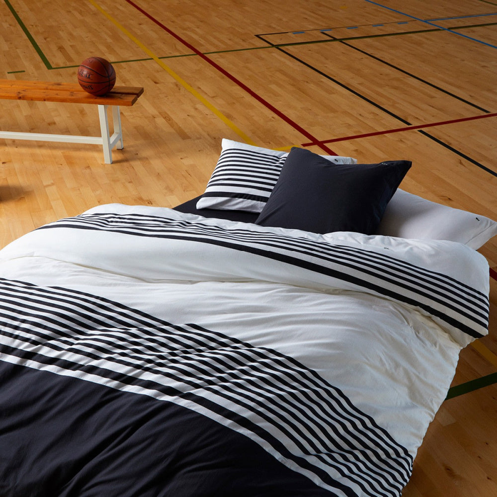 De strepen zijn het hart van dit ontwerp en geven het dekbedovertrek een relaxte, maar toch stijlvolle look. Het lijkt wel alsof je moeiteloos een vleugje Franse elegantie in je slaapkamer haalt. Dankzij de stevige knoopsluiting blijft het dekbed mooi op zijn plaats, zodat je geen gedoe hebt met verschuiven of openstaande hoeken.