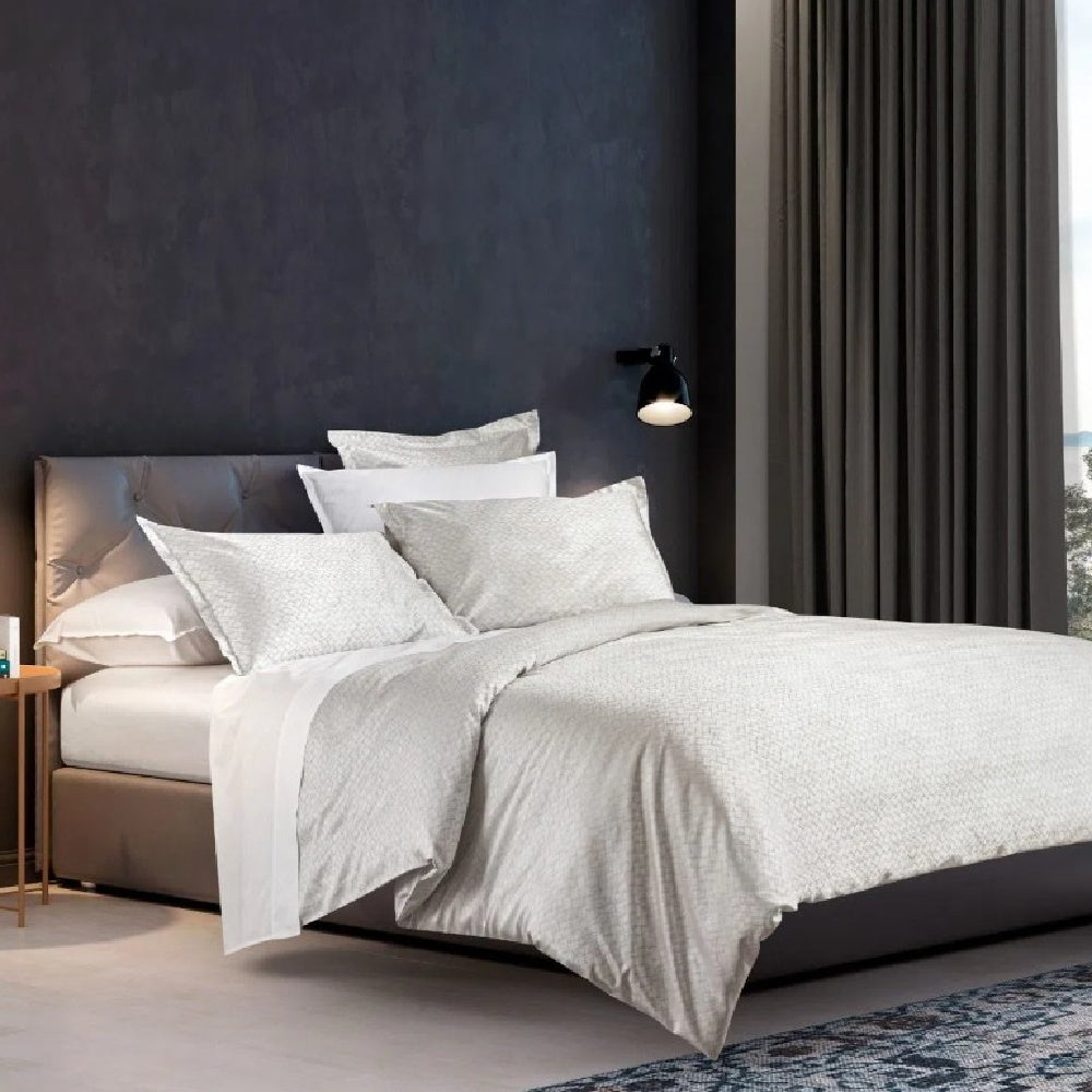 Het DEKBEDOVERTREK SESTRI GREY van Signoria met geometrische dessin is geïnspireerd op Italiaans vakmanschap.