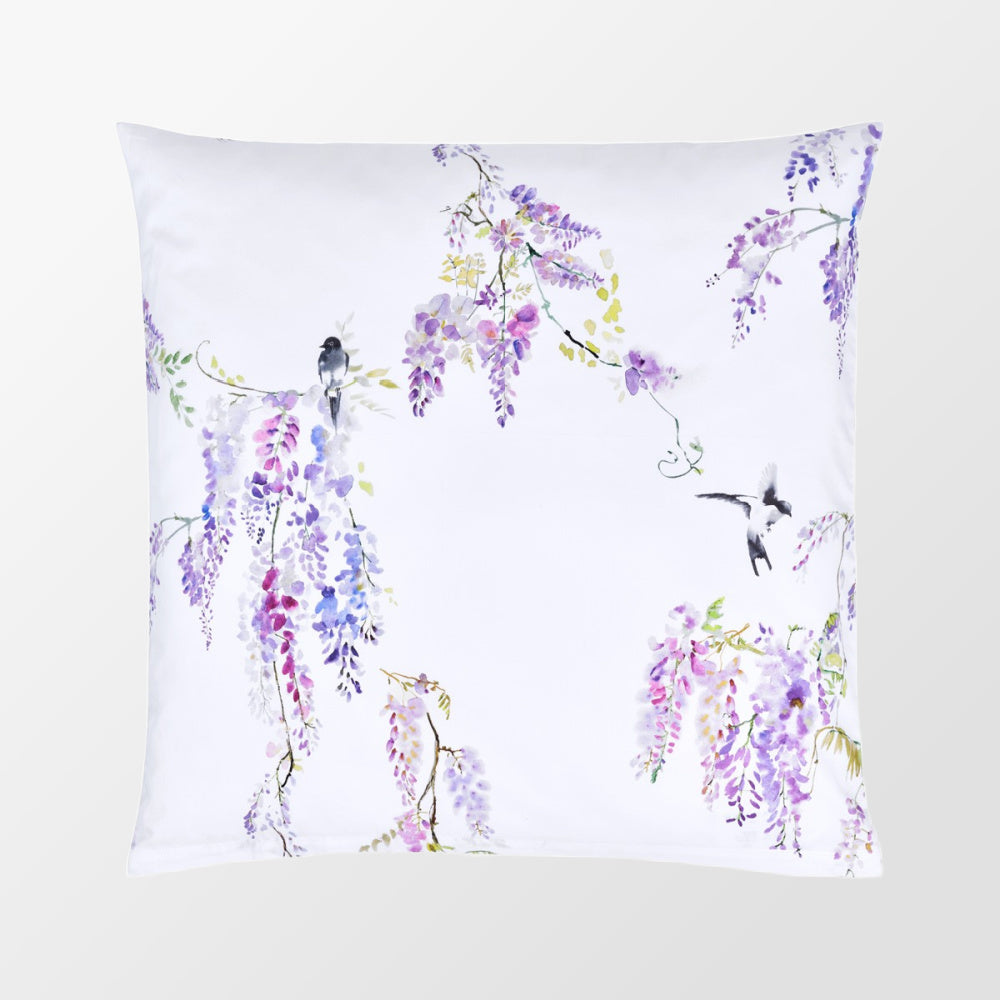 Het DEKBEDOVERTREK PURPLE RAIN van Christian Fischbacher viert de poëtische schoonheid van de Japanse blauwe regen.