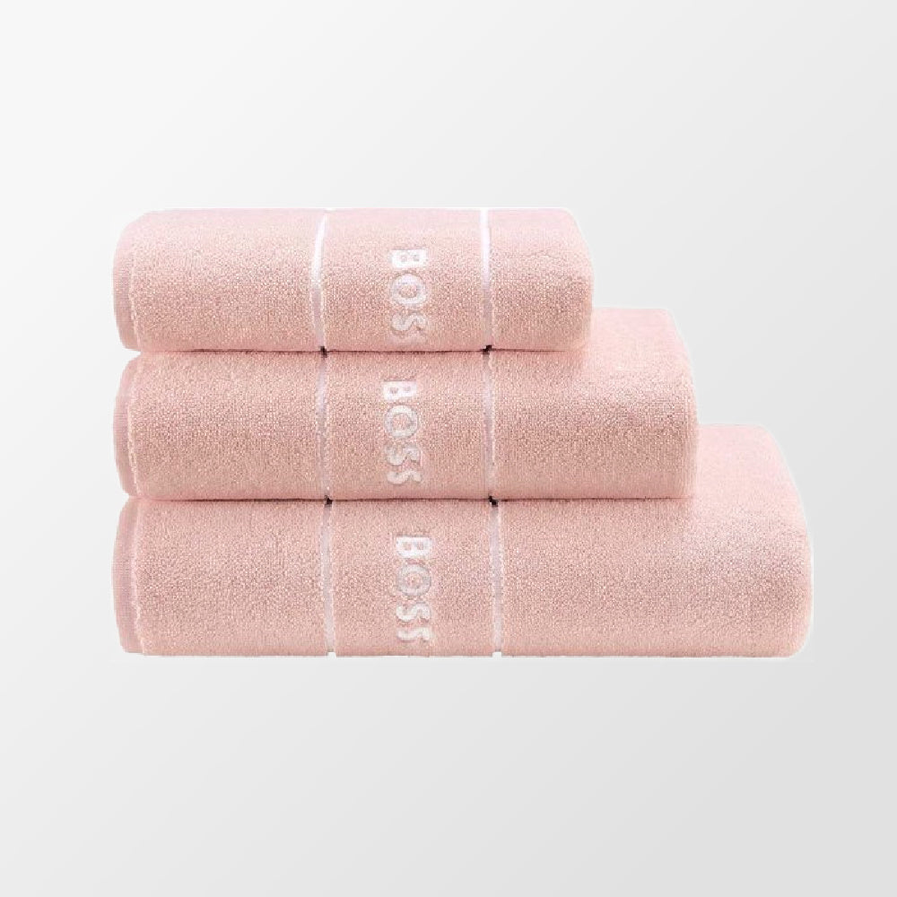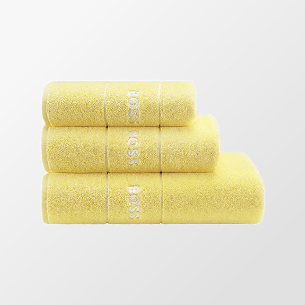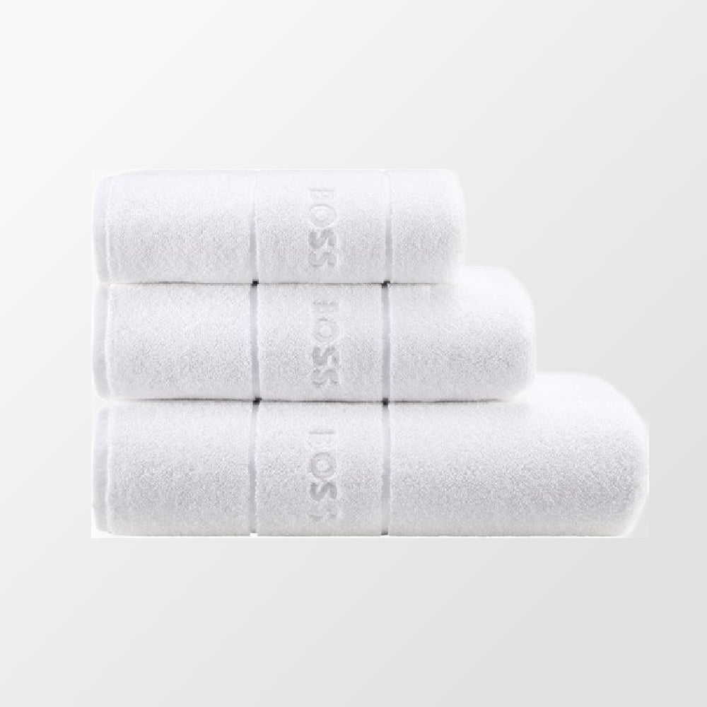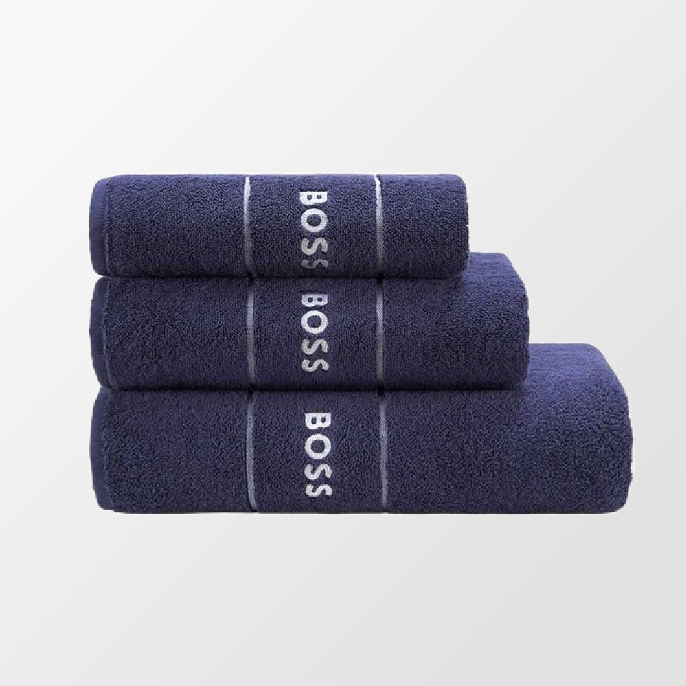TOWEL PLAIN from Hugo Boss is made from 100% Egyptian cotton at 600 g/m², with short, tight loops for a close-fitting feel. Embroidered with the Boss logo in a panel of white stripes and trimmed with woven edges, the cotton towel Plain is skin-friendly and has optimal absorbency. Perfect for everyday use, it can be washed at 40°C.