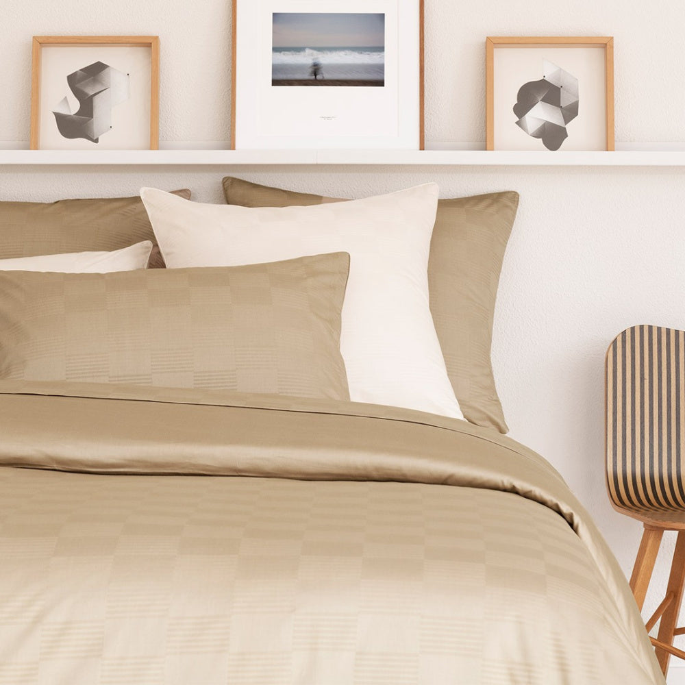 Dekbedovertrek Damier Biscuit met jacquard ruitpatroon