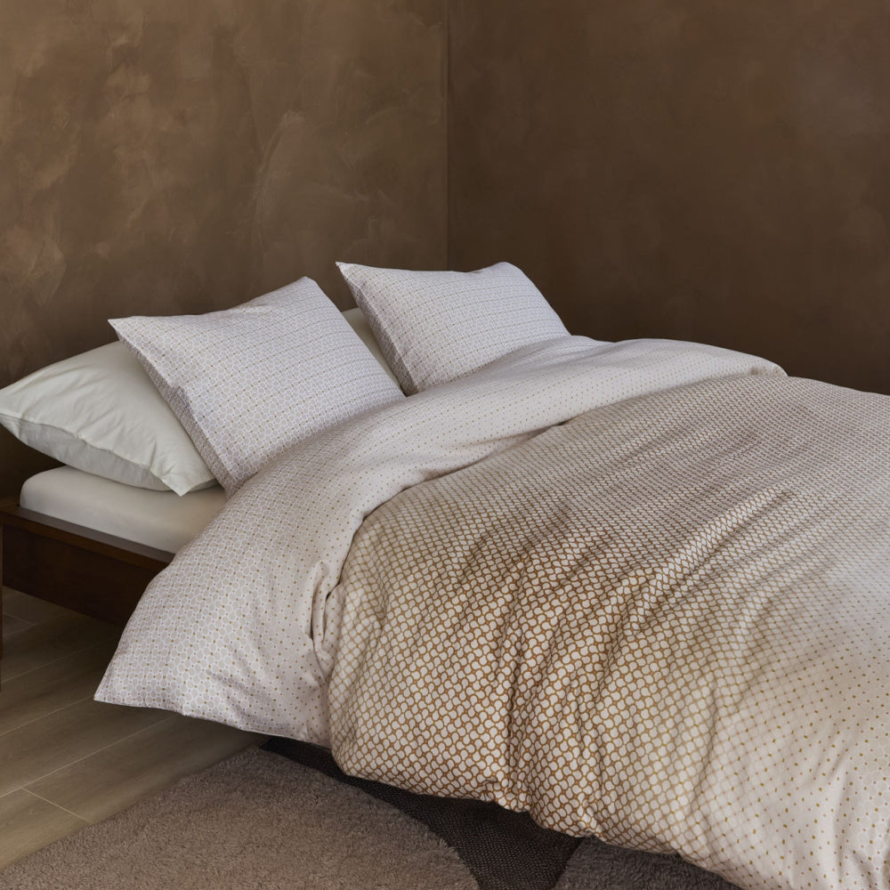 Het DEKBEDOVERTREK NADINE SAND van Beddinghouse met mooi geometrisch patroon.