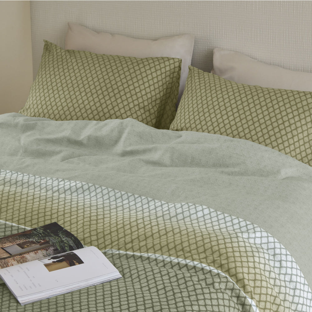 Een harmonieuze slaapkamer met dekbedovertrek Riven Green