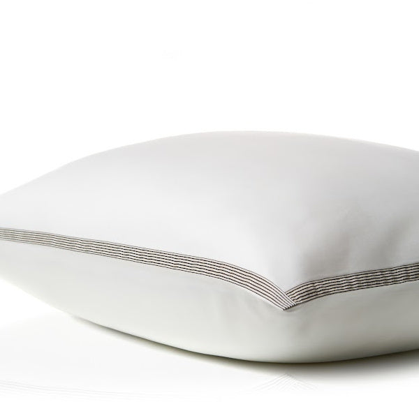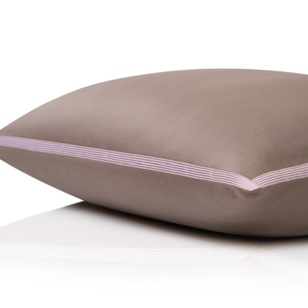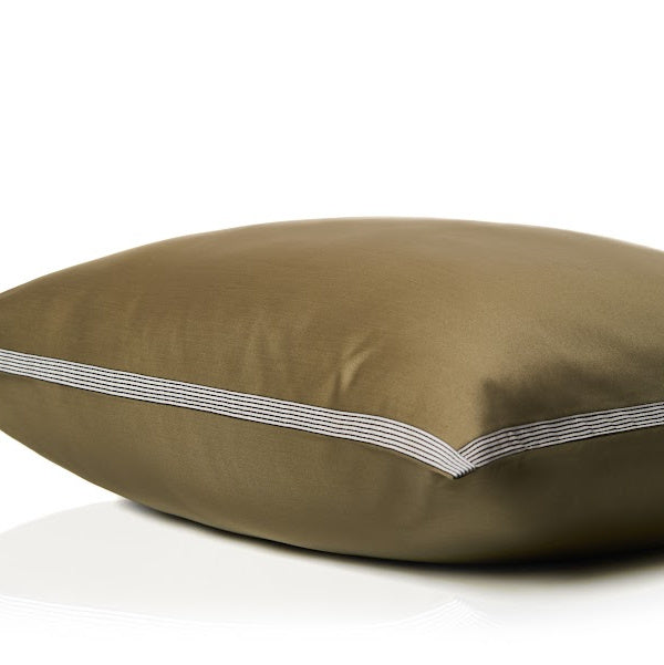 Cette literie en excellent satin égyptien est finie avec un élégant liseré en ivoire et anthracite, offrant une apparence luxueuse. Associez-la avec du satin uni en Light Kaki ou en Offwhite pour une touche de style supplémentaire.