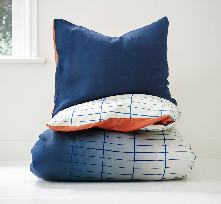 De kussenslopen zijn Dusty red aan de ene kant, nachtblauw aan de andere.