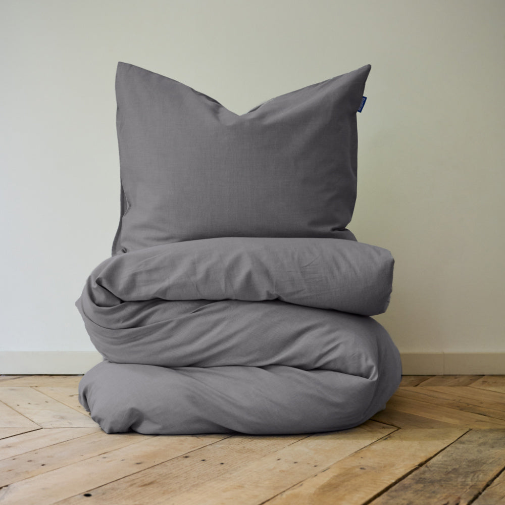 DEKBEDOVERTREK CHAMBRAY CHALK van Auping met de subtiele grijskleur draagt bij aan een verfijnde elegantie in de slaapkamer. De overtrek is een katoenen stof dat is geweven met gekleurde en witte draden, wat een speelse uitstraling geeft zonder te overheersend te zijn. De achterzijde van het dekbedovertrek en de kussenslopen zijn vervaardigd uit perkaal katoen, wat zorgt voor een koel en comfortabel gevoel tijdens het slapen.