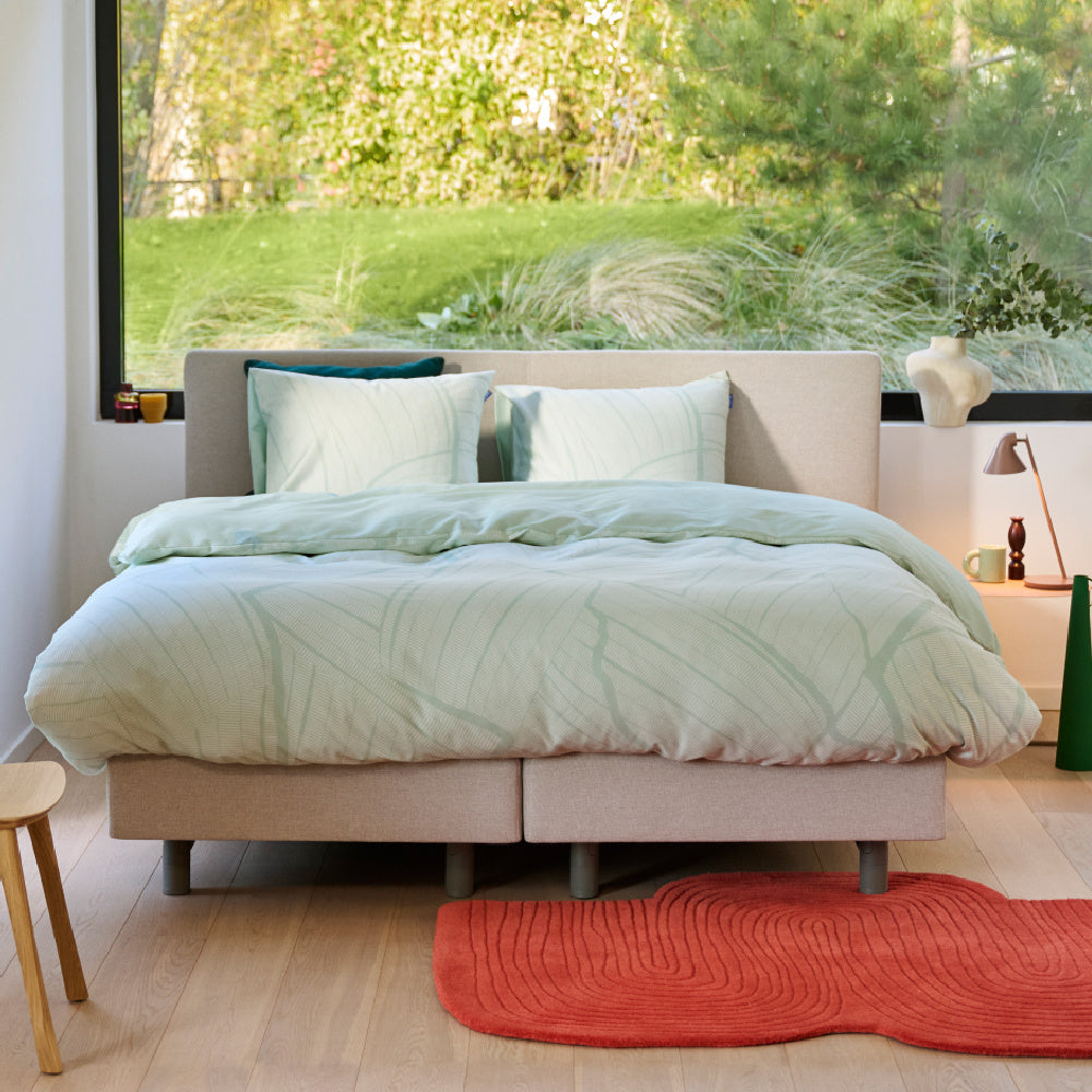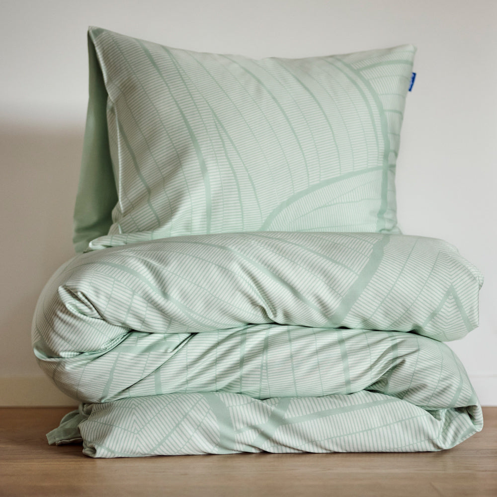Forest Echo is gemaakt uit 100% biologisch katoen satijn, een luxe stof die bekendstaat om zijn gladde, zijdezachte textuur. Door een unieke weeftechniek krijgt het katoengaren een glanzend uiterlijk en een subtiele, elegante glans. Het heeft een aangename, zachte textuur op de huid en zorgt voor een comfortabele en verfijnde slaapervaring. Daarnaast is katoen satijn ademend en beschikt het over uitstekende vochtregulerende eigenschappen, wat het perfect maakt voor elk seizoen.