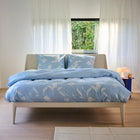 Het dessin van DEKBEDOVERTREK MORNING SHADE heeft een subtiel patroon in zachte blauwtinten dat een serene en rustgevende sfeer creëert. De effen blauwe achterkant biedt de mogelijkheid om je bed snel van een andere uitstraling te voorzien.