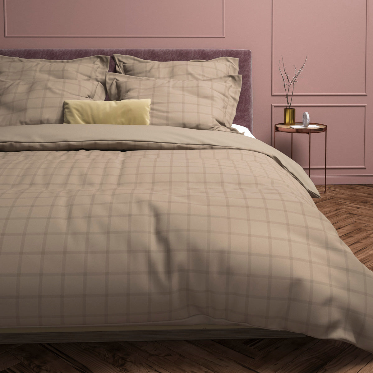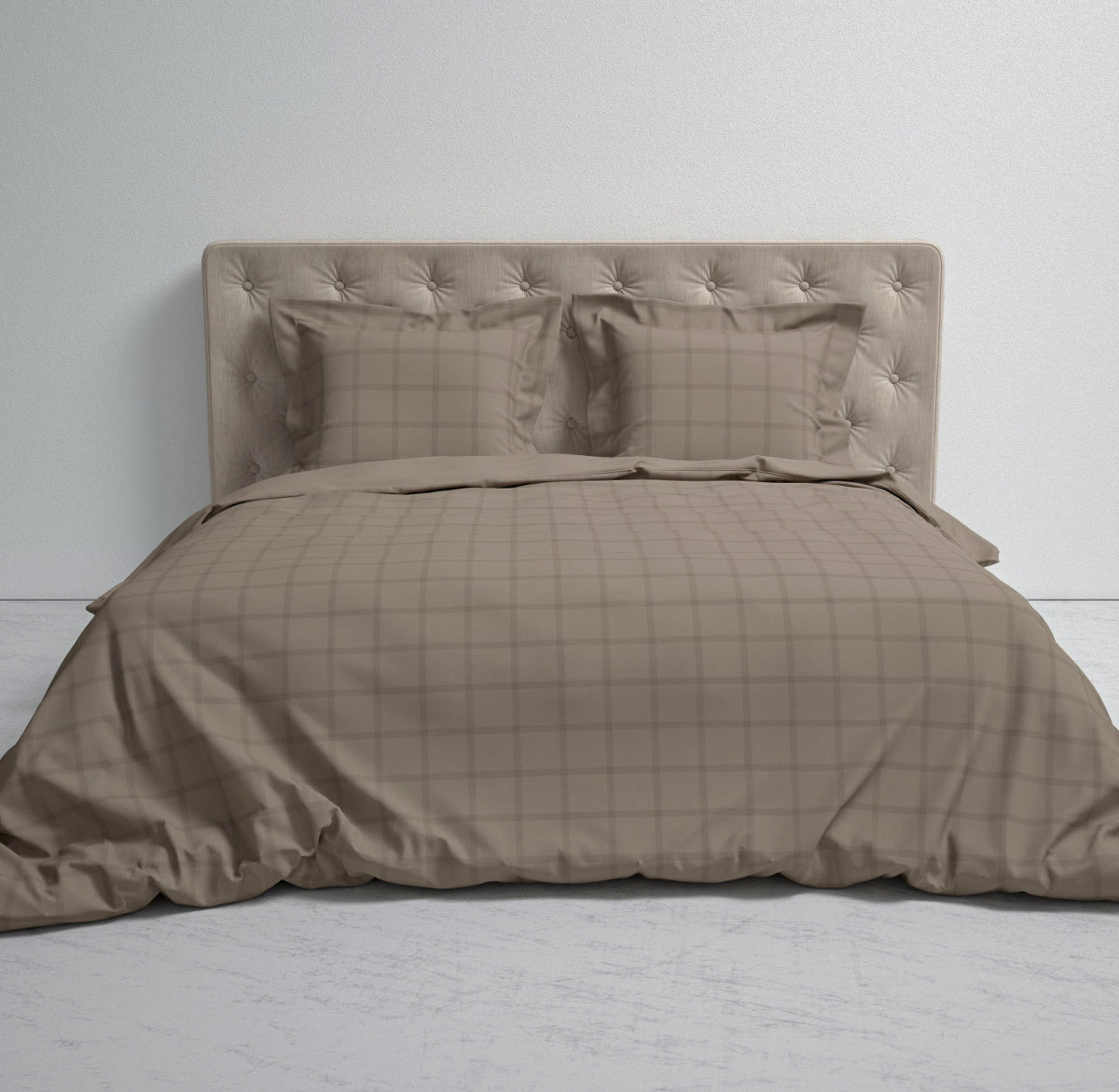 DEKBEDOVERTREK DIAMANTE TAUPE-GREY is een mooie basic aanwinst voor in de slaapkamer. Het overtrek heeft een subtiel geruit patroon. De fijne lijnen die elkaar kruisen zorgen voor een stijlvol dessin, een prachtige toevoeging in vrijwel ieder slaapkamer interieur. De achterzijde van het dekbedovertrek is effen.