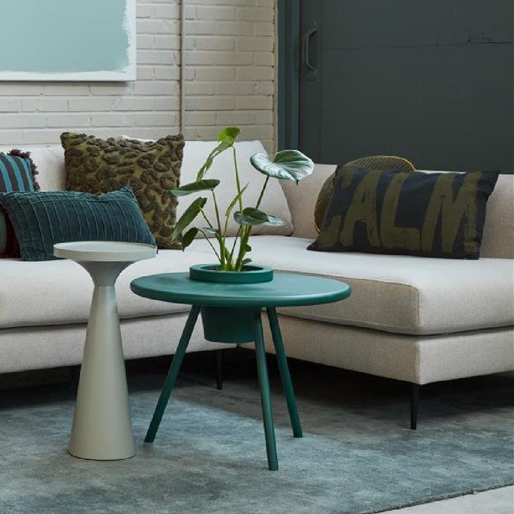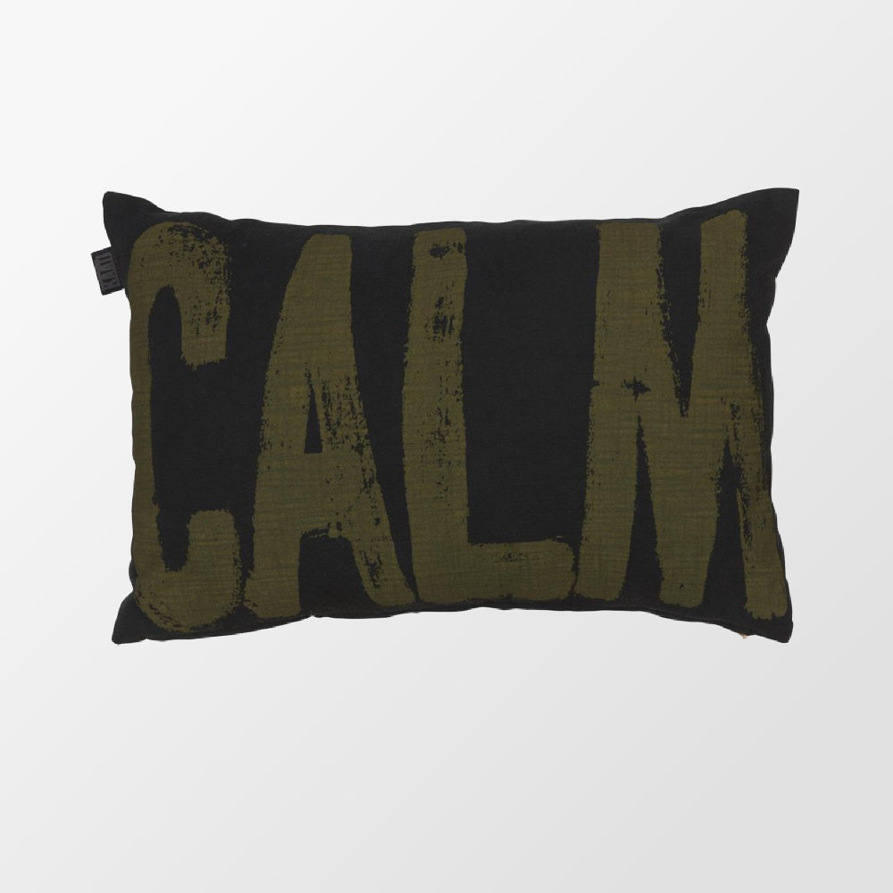 SIERKUSSEN CALM van KAAT Amsterdam dat een langwerpige vorm heeft en opvallende typografie, zorgt meteen voor karakter in je woon- of slaapkamer. Aan de voorkant van het kussen staat het woord CALM in grote, stijlvolle olijfgroene letters, die prachtig contrasteren met de donkergroene achtergrond. Deze grafische, eigentijdse stijl creëert een frisse en ontspannen sfeer met een vleugje urban design. De achterkant is kalm gehouden met een effen donkergroene tint, wat zorgt voor een evenwicht in het geheel.