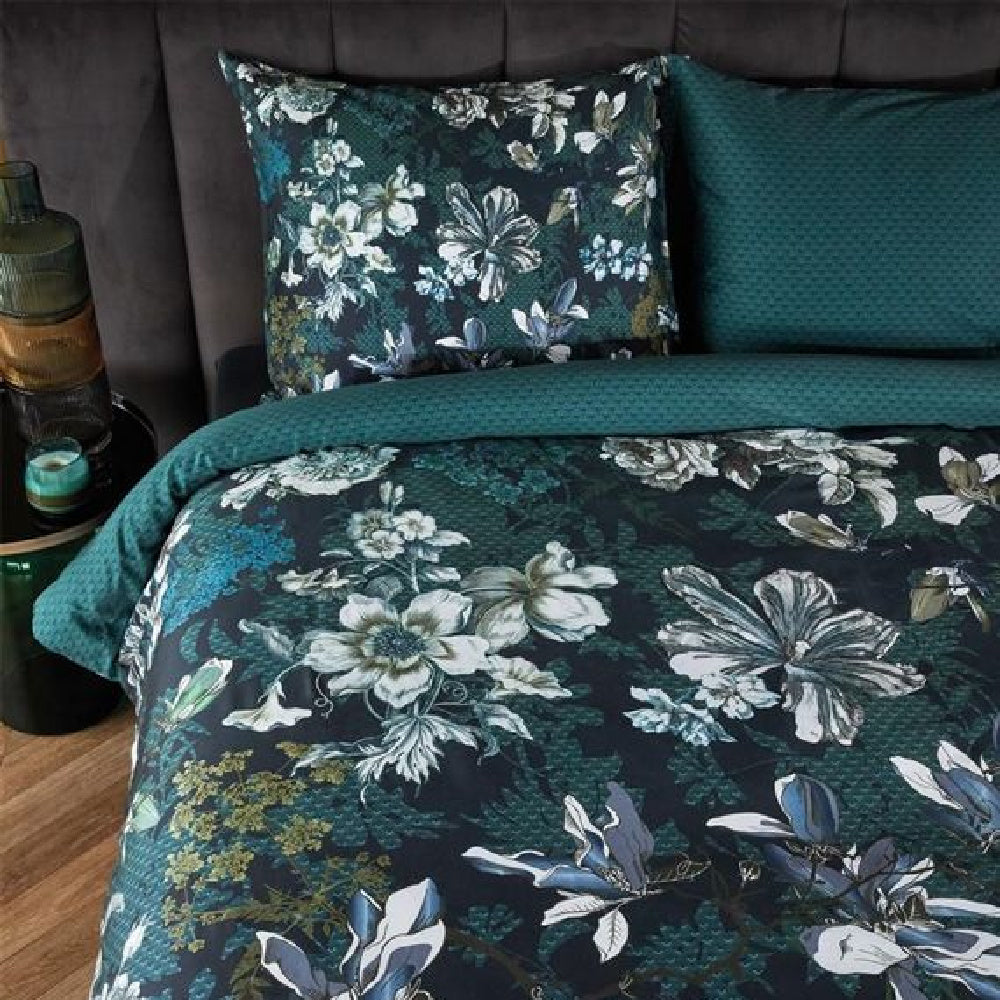 DEKBEDOVERTREK FURORE BLUE van Kardol is een verfijnde mix van Japanse inspiratie en historische gravures, die samen een modern en cultureel gevarieerd ontwerp creëren. De bloemenstijl en het motief zijn gebaseerd op Japanse kunst, verrijkt met klassieke gravures uit het Rijksmuseumarchief. Deze bijzondere combinatie van oude prenten en moderne foto's geeft het overtrek een unieke diepte en aantrekkingskracht. De kleuren van het ontwerp vormen een samensmelting van groene en blauwe tinten, met een subtiele toevoeging van helder mosterd en kopergroen, wat een rijke en luxe uitstraling creëert.