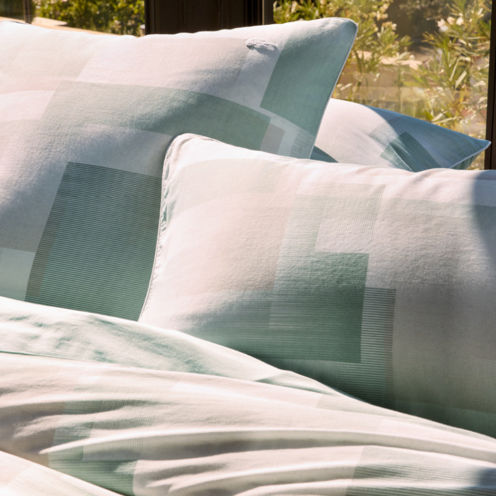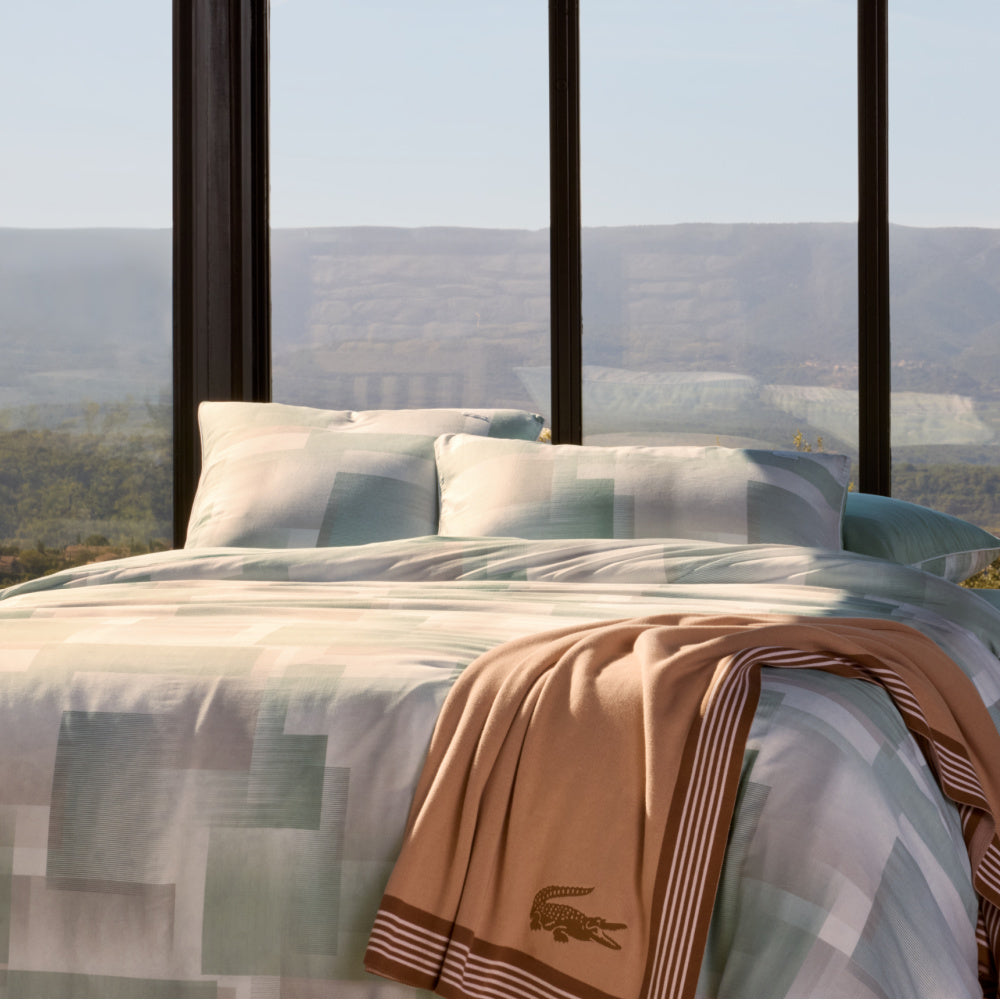 DEKBEDOVERTREK L SONGE van Lacoste belichaamt de essentie van het Lacoste-erfgoed. Dit dekbedovertrek is geïnspireerd op de vier kernprincipes: chic, cool, street en sportief. Het ontwerp combineert een palet van iconische groentinten met een elegant art deco patroon, waardoor een harmonieuze balans tussen moderniteit en traditie ontstaat.