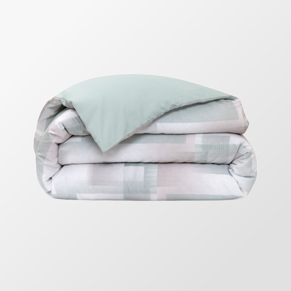Het is gedrukt op 100% biologisch katoen satijn 300TC, voor een luxe gevoel. Knoopsluiting onderaan voor een strakke afwerking. Geborduurd logo van 45 mm voor een subtiele merkidentiteit. Het dekbedovertrek is omkeerbaar.
