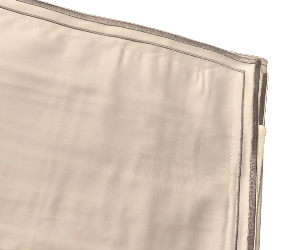 DEKBEDOVERTREK ANOA heeft een smal sierstiksel en een breder rondom de slopen en op het overtrek.