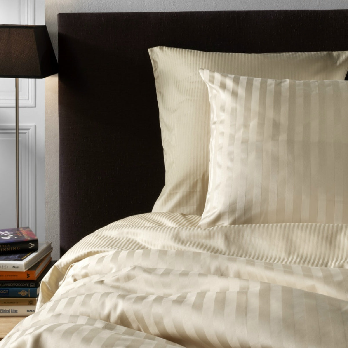 Dit dekbedovertrek Philadelphia is verkrijgbaar in 4 kleuren: champagne, wit, bleached sand en baltic green. Philadelphia is aan één kant voorzien van smalle (0.5cm) en aan de andere zijde van brede (2cm) strepen.