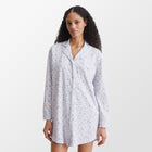 De jurk is vervaardigd uit 100% gecertificeerd biologisch katoen. De stijl van de casual boyfriend, met een bowlingkraag en borstzak, zorgt voor een moderne look.