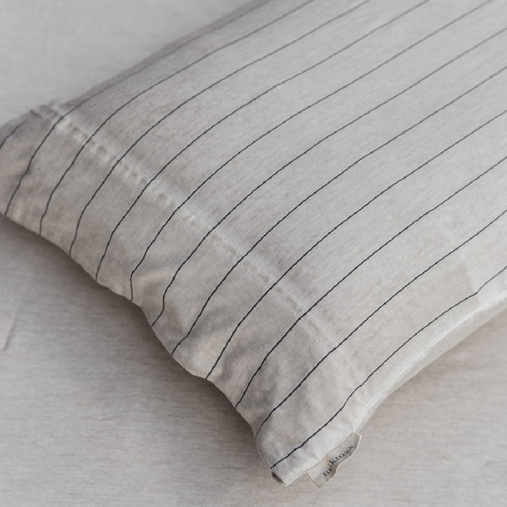 Het DEKBEDOVERTREK SOL van Mikmax is de perfecte combinatie van eersteklas vakmanschap en ongeëvenaard comfort. Gemaakt van 100% hoogwaardig gekamd jersey katoen, biedt het beddengoed een uitzonderlijke zachtheid en duurzaamheid, met lange vezels die zorgen voor een gladde textuur die bestand is tegen pilling. Dit betekent dat de overtrek zijn verfijnde gevoel behoudt, zelfs na herhaaldelijk wassen. Het stijlvolle ontwerp, met een verfijnde beige kleur en zwarte strepen, voegt een moderne en veelzijdige uitstraling toe aan elke slaapkamer.