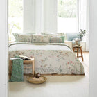 Met sierlijke bloemen die zwierig over het dekbedovertrek zijn geplaatst