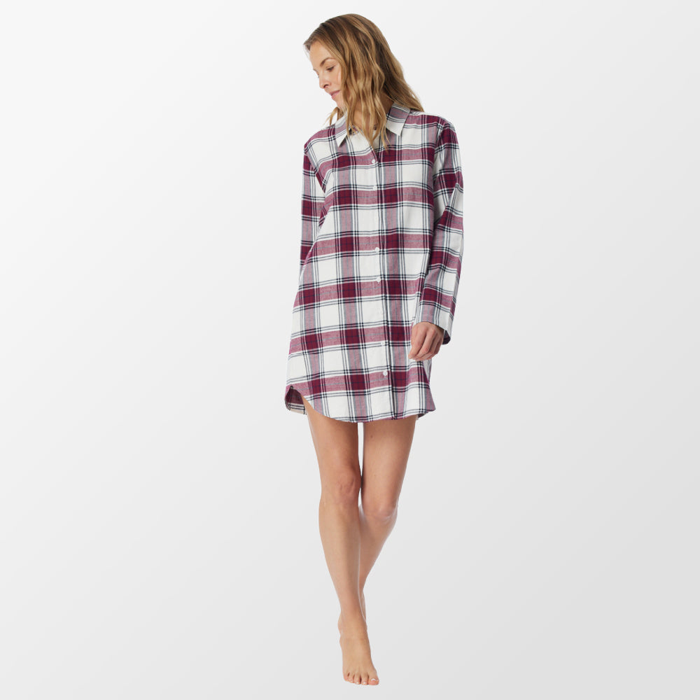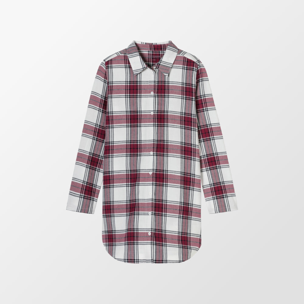 Het slaapkleed heeft een mooi ruitjespatroon in winterse rood- en crèmetinten. De afgeronde zoom draagt bij aan het ontwerp. Dit nachthemd, vervaardigd uit 100% biologisch katoen en warm geweven, is niet alleen modieus, maar biedt ook een geweldige comfortabele ervaring. Maak je kerst helemaal af met dit schitterend slaapkleed.