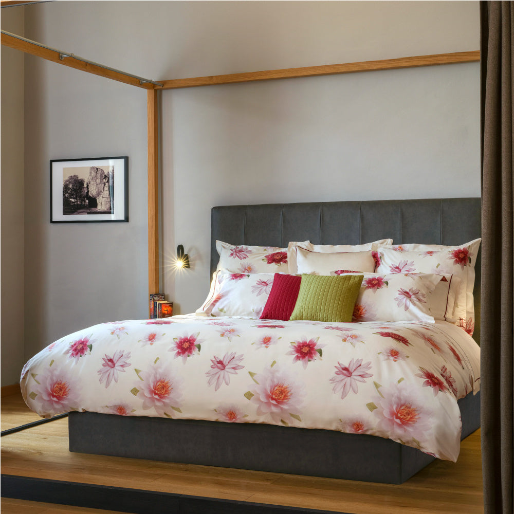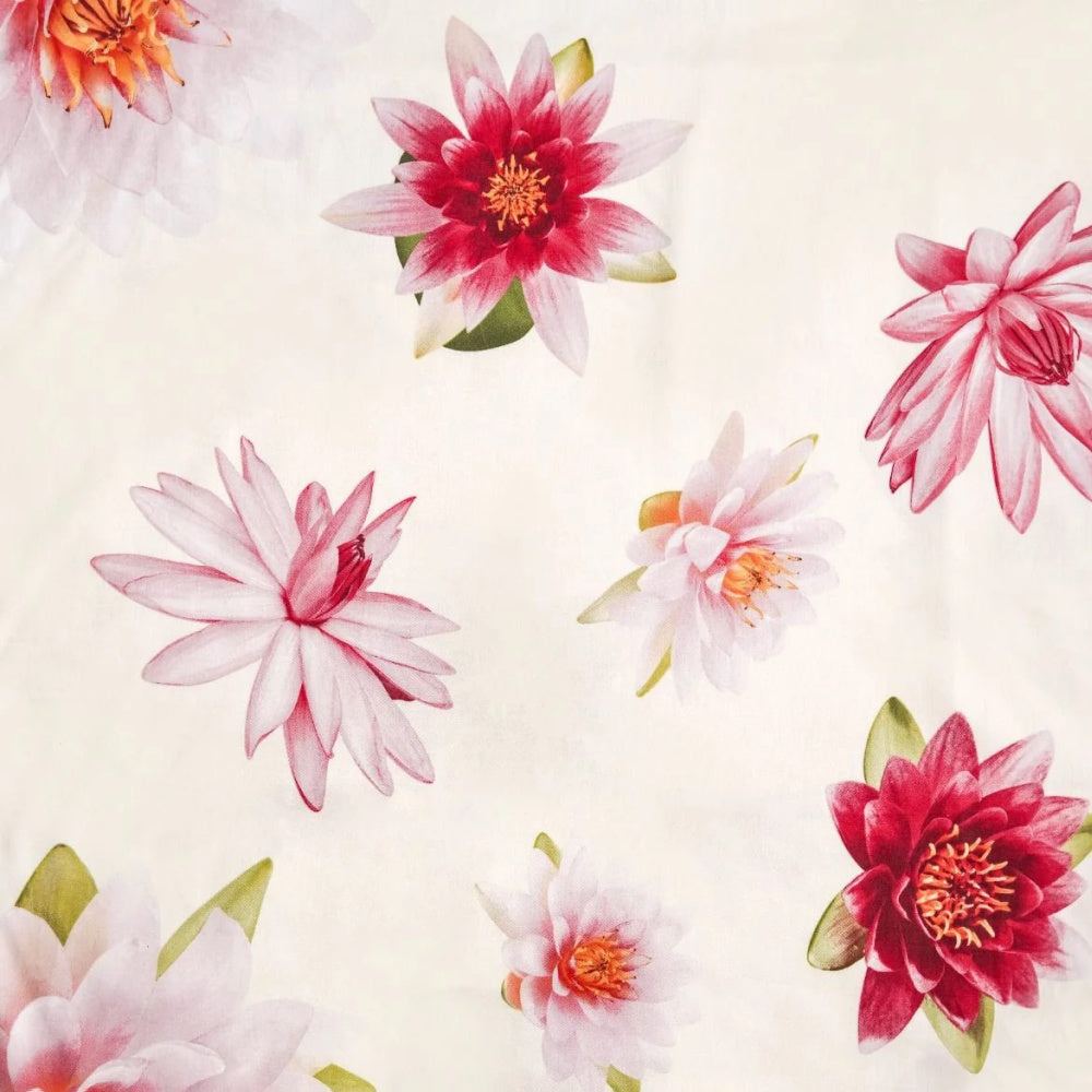 De verfijnde ontwerpen van het dekbedovertrek weerspiegelen deze magische transformatie. Ze behouden de zachte tinten van de waterbloem. Het is gemaakt van fijn 300 TC katoen satijn en zorgt ervoor dat je niet alleen geniet van het uiterlijk, maar ook een comfortabele en luxueuze slaapervaring hebt. Dit dekbedovertrek is een uitstekend resultaat van de traditie en de hoogwaardige stof.