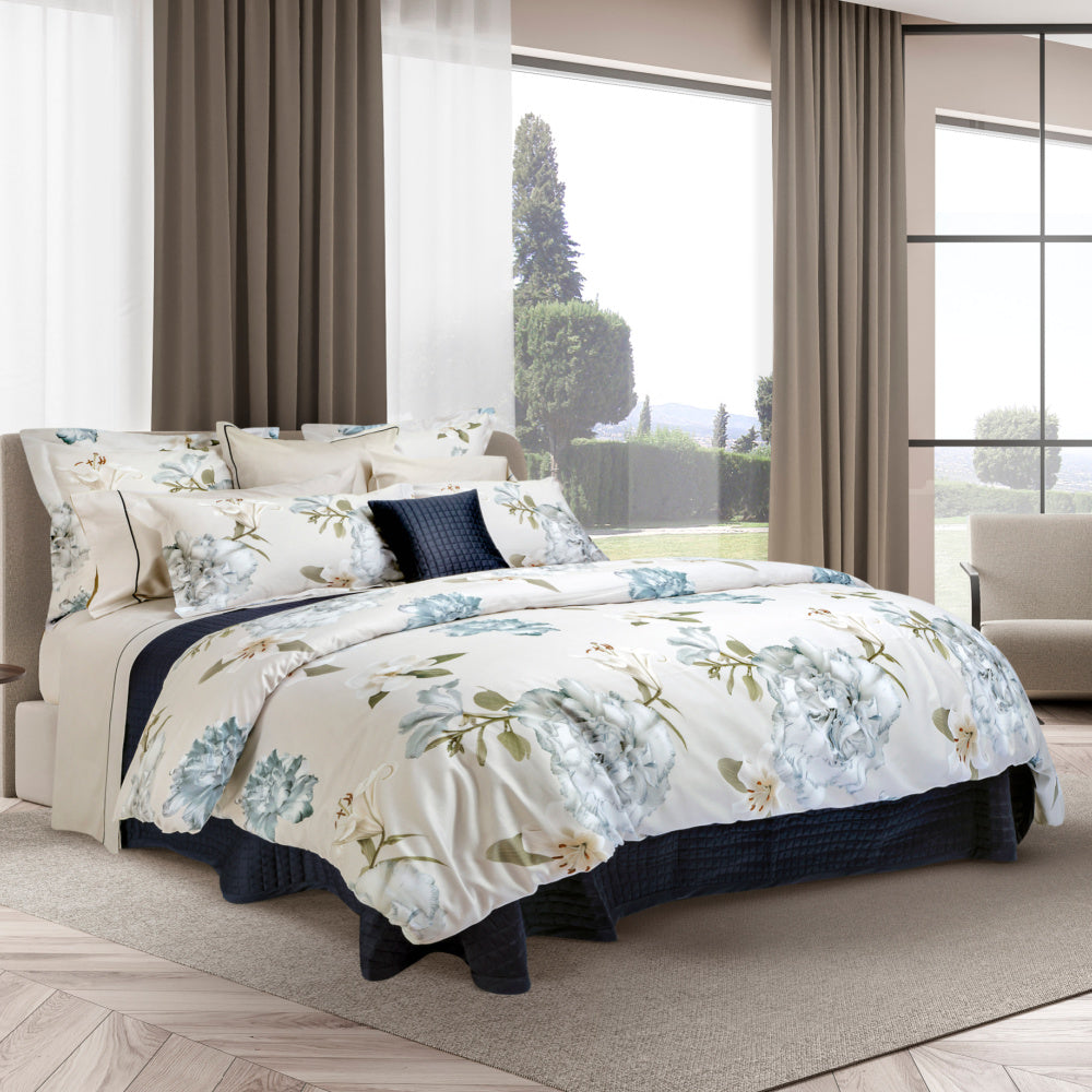 Het DEKBEDOVERTREK GIOIA PEARL/BLUE zorgt voor een levendige en stijlvolle sfeer in je slaapkamer.