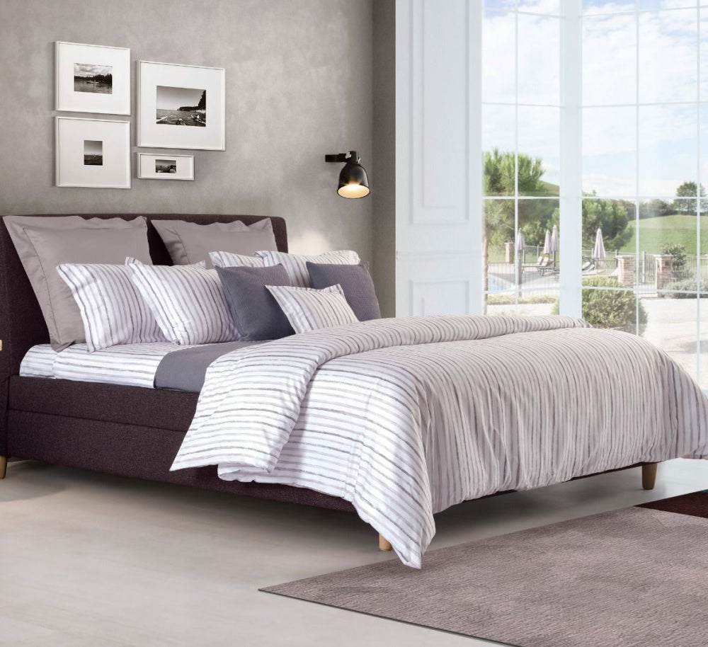 RIGATO THISTLE is een klassiek ontwerp met een twist, gedrukt op 100% extra langvezelig katoensatijn. Rigato is het ontwerp van Duizend-en-een-nacht en lokt elke wilde geest in een rustgevende en inspirerende slaap. Zowel voor- als achterkant is gestreept.