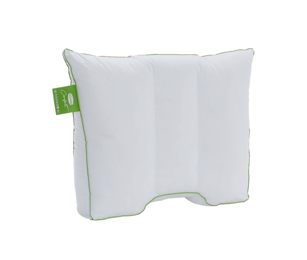 De nekinkeping zorgt ervoor dat het kussen het hoofd en de nek volgt zodat de nekwervels ontspannen liggen.