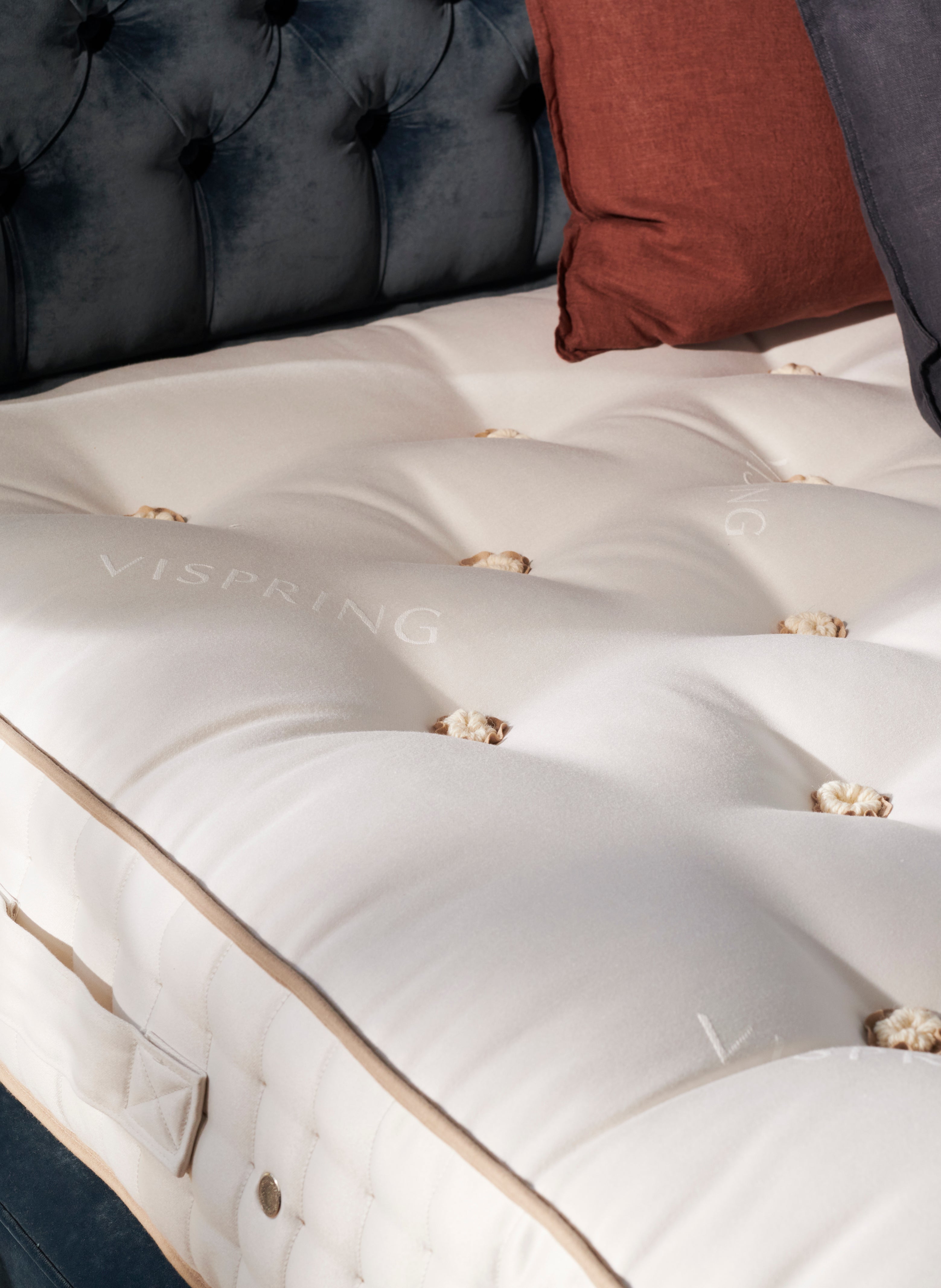 In uw Vispring Tiara boxspring worden alleen de beste natuurlijke materialen verwerkt. De bekleding bestaat uit zorgvuldig geselecteerde lagen van een mix van echte Shetland wol en katoen. Daarnaast wordt het bed gevuld met handgekamd paardenhaar wat samen met de Shetland wol zorgt voor extra veerkracht en ventilatie. De combinatie van deze materialen zorgt voor een ideale en natuurlijke slaapomgeving.