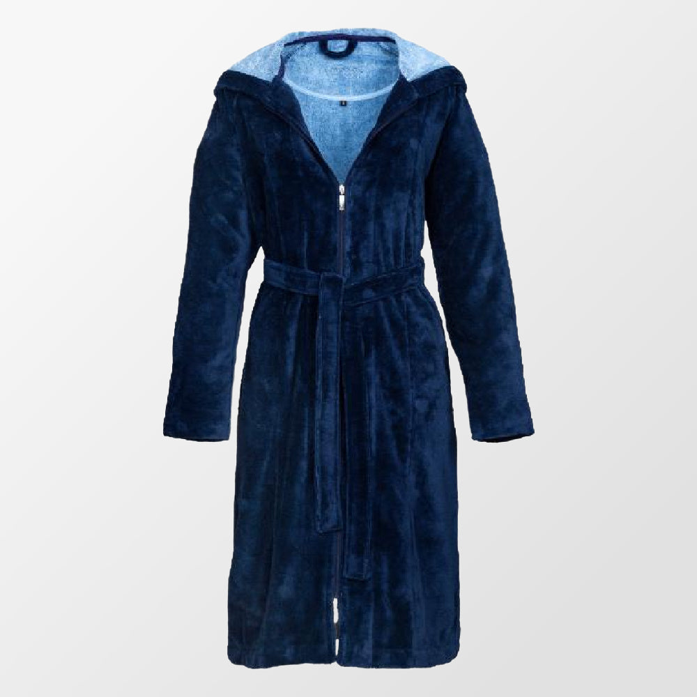 BADJAS PALERMO WINTERNIGHT van Vossen is een heerlijk zachte en lichte maar toch warme dames badjas met rits. Hij is zo zacht en wollig dat je hem bijna niet meer wilt uitdoen. Aan de binnenkant een garenmengsel van katoen, bamboe-viscose en aan de buitenkant zachte fleece. De 2-kleuren combinatie maakt deze badjas apart. Perfect aansluitend model met ritssluiting en capuchon. Dankzij de ritssluiting is hij makkelijk en snel te sluiten. Met ingebouwde zakken en moderne raglanmouwen. De badjas kan gewassen worden met gelijke kleuren tot 60 graden.