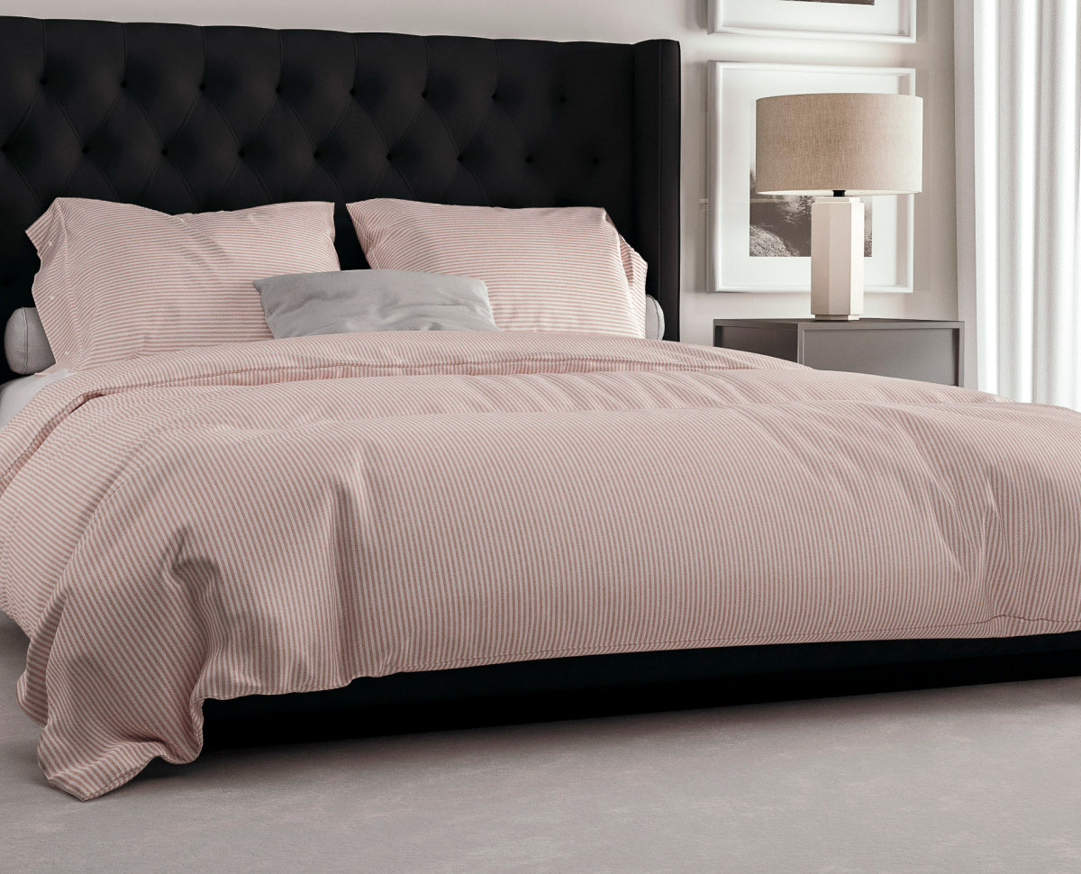 Dekbedovertrek met ingeweven streepjes in roze van Heckett&Lane